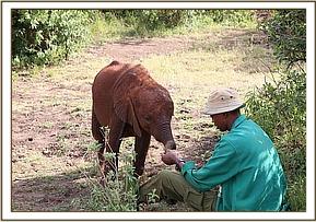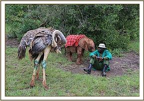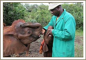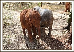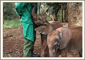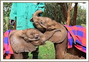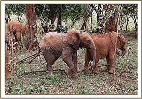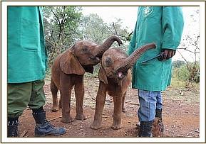 Lasayen and Ndotto play with their keepers