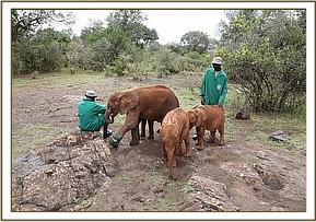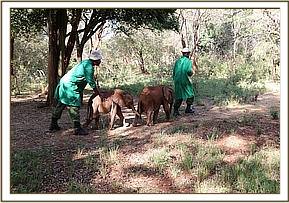 Lasayen, Ndotto and Hamsini with their keepers