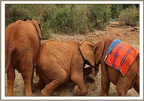 Lasayen and Ndotto preparing to chase Pea and Pod