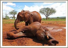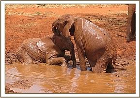 Rombo, Kivuko and Shimba mudbathing