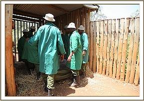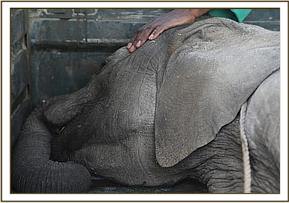 Back at the Nursery she was taken off the drip and helped up. Amazingly she had now mustered the strength to get to her feet. She immediately drank milk and charged the keepers who were quick to make a hasty exit from her stockade in order to give her some space. She started to feed on the fresh cut greens that were in place and continued to feed throughout the night with fresh vegetation being brought to her in abundance.