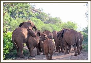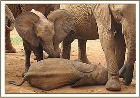 Having downed their morning milk, the usual stockade games took place, Tassia playing with Taveta in a game of hide and seek which went on as the group headed towards the main Park. Later they settled into browsing. A lot of fun was had at the mudbath and in the evening Dida led the column back, but was overtaken by her friend, Ndii.