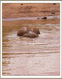 The Juniors browsed the foot of Mazinga Hill today. At the mudbath Siria mounted onto Kenia in the middle of the pool while Tassia and Taveta engaged one another in the usual wrestling match. Shimba rolled onto Wasessa’s head making her scream which drove all out of the pool. Shimba fled, fearing Wasessa’s revenge while the others rested under shade.