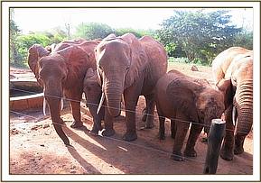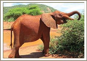 Ex Orphan Lolokwe visited the Stockades very early in the morning, before the Juniors had been let out of their Night Stockades and watched the Keepers enjoy their morning tea. As soon as the Stockade doors were opened, the babies came rushing out to get their milk, and then headed for the Copra handout. After the usual Stockade games, Lesanju led her group out to browse. At 11 a.m. Tassia, Ndii, Kenia and Taveta led the babies to their milk, and then to the waterhole where they were joined by the others, who stood on the edge splashing mud and water over their bodies before getting in. Kivuko submerged completely while Wasessa again put on a good show, running around the pool kicking the water up using her front legs and trunk. As usual, Mzima was last out, long after the others had completed their dust bath.