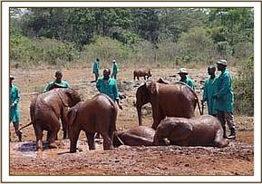 For the second day Sunyei refused to go into her stable, but we manage to coax her in. Galana interacted fully with the other elephants today, following them everywhere. She even came for the mudbath for the first time, but left early to return to the bush.