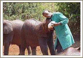 Early in the morning, Makosa happened to meet the Yard Man named Peterson, and chased him all the way to the gate. Peterson was bare foot, but he had to run for his dear life. In the afternoon, a group of giraffe with babies appeared, which scared the elephants, who ran helter skelter. Galana was lost in the bushes, but we soon found her.