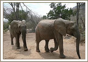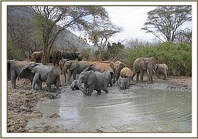 It was a day without much fun, the Youngsters concentrating on browsing now that the dry season has set in. In the field Loijuk took Chaimu and Kilaguni from the main group to feed separately joining the others when it was time for the mudbath.