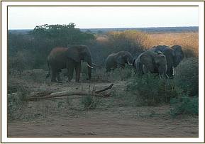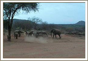 Having quenched their thirst in the morning, led by Loijuk, the orphans headed to the Kone area to browse before attending the mudbath at noon, after which they returned to Kone for the afternoon feeding. At 4 p.m. Naserian, Kora and Lualeni turned up to join the Juniors. On the way back to the Stockades in the evening the group passed by a wallow where they had an evening mud and dusbath. Upon arrival at the Stockades, and having taken water at the trough, Zurura refused to go into his Stockade, instead remaining with the three Ex Orphans. Later he went off with them for a trial night out. The Keepers hoped he would return during the night, but he did not.