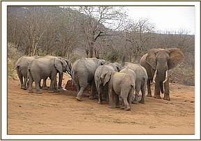 The entire Ex Orphan Herd amongst whom was Mgeni and another wild elephant, joined the Juniors in the morning and the morning was spent browsing all together. Kilaguni led the way to the mudbath, where most of the herd enjoyed a mudbath while others took to Soil Dusting. In the afternoon the Ex Orphans separated from the Juniors, but turned up again to take water at the Stockade in the late evening before leaving to an undisclosed location.