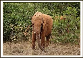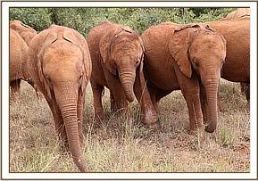 Elephants can be quite fearful animals. As the orphans were enjoying their early morning browsing session a young impala got trapped amidst them and panicked as it could not see its family. Arruba, Suswa, Mashariki and Rorogoi, all big girls now, scampered through the bushes wailing and trumpeting with their ears erect running towards their keepers. They stopped in their tracks next to their keepers and listened for further noise. They remained quite nervous and on edge for sometime before settling down to browse again.