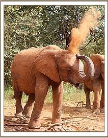 Soon after the orphans had their 9 o’clock bottle, Suswa and Mashariki had a busy time enjoying a dust bath. They completely lay down in the soft soil and as they were partially hidden by the flying dust, Pea and Pod also decided to join in on the dust bathing session. They too lay down on the loose soil close to Mashariki and began flapping their wings to pick up the soil and dust themselves. Suddenly Mashariki got up and ran after them with her ears spread and threw her trunk towards them. Pea and Pod got up and sprinted away. As they tried to turn back to the dust bath they were then faced with Suswa charging towards them, and they had to abandon hopes of finishing their dust bath and settle on feeding instead. Suswa and Mashariki turned back to enjoy their happy dust bath, until the keepers led them off into the forest.