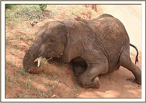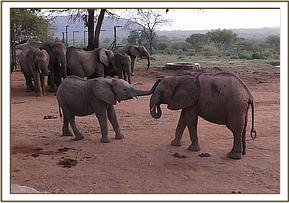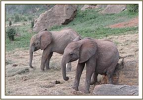 At mud bath time, Kauro led the first group of Tusuja and Karisa for their noon bottle feeds. After mud bath, Kithaka and Barsilinga, who consider themselves as grownups these days, moved away from their friends where they enjoyed some privacy in a soil dusting exercise.