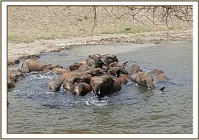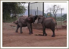 The senior Ex Orphans in the company of a few wild elephants reported at the stockade early before dawn. When the juniors were let out, they intermingled with the Ex Orphans for sometime before parting ways. Siangiki had a brief chat with Kalama before following her friends.
