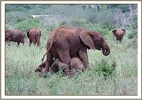 Vita found herself in a compromised situation whem she put her trunk into Salama's mouth to sample some of his food. Salama wasn't having any of this and bit Vita's trunk hard, causing her to scream in pain. Vita took revenge and a tough fight broke out, but Vita's one sharp tusk did the trick and caused Salama to retreat. For the rest of the day the browsed avoiding each other.