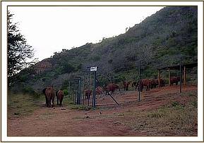 Emily, Aitong and Sweet Sally came and visited the others in the evening. They then heard the scream of a wild calf on Mazinga hill and left the stockade compound to join the wild herd.