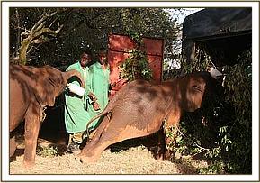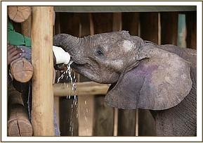 Unlike previous days, the elephants to be moved did not want to go into the truck. Only Shimba obliged. At the next milk feed Siria joined Shimba in going in, but Mzima and Wasessa refused. However, Lesanju, Lempaute and Sinya had no problem going into the truck, although they were not the ones due to go down. It was as though the elephants could read our thoughts!