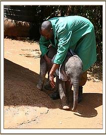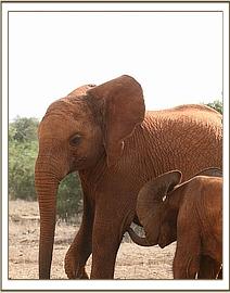 There was yet another rescue alert this morning, this time involving a 1 month old baby bull from teh Masai Mara, who was heard bellowing the previous night, and was found all alone in the morning by a Masai Elder not far from the town of Kilgoris. Keya Wildlife Service personnel were alerted who managed to capture him, and drove him to Kitchwa Tembo airfield to await the arrival of the rescue plane. He cam into the Nursery in the late afternoon in an advanced state of emaciation and very week but took milk and rehydrants eagerly. we named him Soit. Lesanju, Lempaute and Sinya are still very concerned about the absence of Shimba, Mzima, Siria and Wasessa, and whenever separated from the babies, run up and down anxiously looking for them, fearful that they might have been spirited away as well. For that reason, we have decided to allow the babies to remain with the older elephants throughout the day, coming to the mudbath as one group instead of two. This has displaced Kenia who looked upon herself as the Mini Matriarch of the younger group, especially taking care of Mawenzi and Ndii. Now that the older girls are present, she has been over-shadowed in this role.