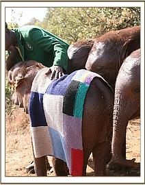 All the babies woke up in a jovial mood, running and trumpeting as they headed out into the bush. Today, being Friday, was the day when all have coconut oil rubbed on their skin, so it was the first time for Kainuk. Afterwards, she enjoyed rolling in the grass and playing in the dust, with Olare supervising her every move. In the afternoon the Vet arrived to take blood from Kudup and Turkwel, who have not been thriving as they should.