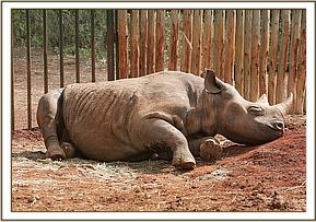 Today was the day that Shida was transferred to the Ngulia Rhino Sanctuary in Tsavo West National Park. He was kept inside his Stockade overnight in order to be on hand for the KWS Vets and Rhino Translocation team to sedate him at 8.30 a.m. in the morning, and remove him before the mudbath visitors turned up at 11 a.m. Having been sedated, a radio transmitter was inserted into his horn, and he was loaded in a Box onto the truck by a Crane. One Keeper accompanied him, along with sackfulls of his dung and supplements to feed him at the other end in order to try and anchor him to his new home.