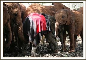 The orphans enjoyed a very active mudbath hour today, some wallowing in the pool, Chemi Chemi and Kibo trying to mount on whoever was within range, and little Naipoki sandwiched between Mutara and Makireti and led by Shukuru going up and down the cordon greeting all the visitors. The visitors were extremely touched and amazed at how the orphans understand everything the Keepers say to them, and enjoy the attention they receive from strangers.