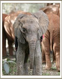 Today a tiny orphaned elephant calf from the Mt. Elgon area was flown to the Nursery. She was named “Kongit”, the name of the area where she was found having fallen over a Cliff. She is newborn and had bruises on one foreleg and a hind leg. She had been fed cows’ milk by her Rescuers, which will result in stomach problems, but we hope for the best.