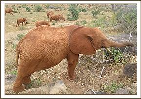 The orphans spent longer than normal at the mud hole before they headed back out to browse for the remainder of the day. Kenia enjoyed a scratching game against a tree trunk where she was joined first by Mashariki and then by Naipoki.