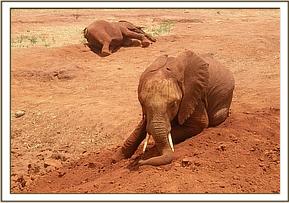 The orphans arrived at the middle water hole in the afternoon and after their milk bottle enjoyed numerous mud bathing games.