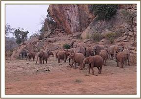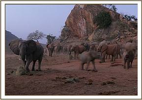 Early before dawn, two lions roared. The roaring of the lions forced Narok and Olare’s groups to run back and seek refuge at the stockade compound. At six o'clock in the morning, the orphans were let out and joined Olare and Narok’s groups. Naseku fed close to Narok as they recounted to each other how the roaring of the lion had frightened them. Narok informed Naseku that she was lucky to have a safe place to spend her nights compared to them. Naseku concurred with Narok that life was much smoother and safe at the stockades and with the keepers. Narok reminded Naseku that however much she is enjoying, a day will come when she will have to leave the human family and join her real family out in the wild. Naseku thanked Narok for her advice then with excitement, trumpeted to inform her friends that it was time to hit the road to start their day in searching of food to eat.