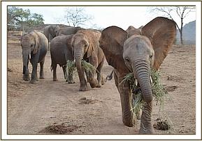 This morning the orphans had their milk as usual before coming out and greeting the Ex Orphans that were waiting for them there. They all co-operated and shared the lucerne nicely before the dependent orphans left for the bush.
