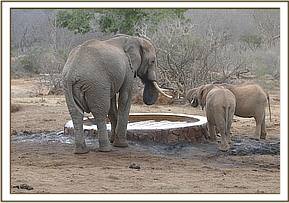 Half Trunk was in a group of wild bulls who came in mainly to have water. Half Trunk tried to play in the new mud bath with the orphans after their milk. He later walked away to join his group who were at the water trough busy drinking water. The orphans later came back to drink water after the wild bulls had left and walked back to the bush to browse.