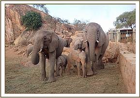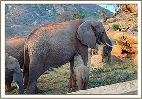 Sapalan and Namalok browsed separately from the others. They prefer to be separate from others or sometimes amongst the older Ex Orphans. Roi later led the group to the mud bath for their milk.