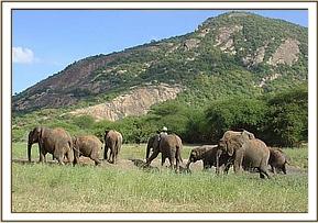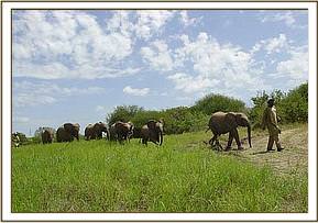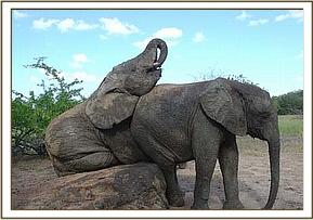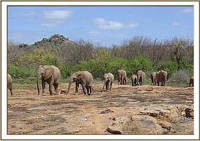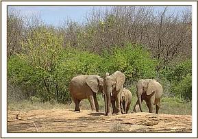 The group left early, as usual, and at 8.30 a.m. spotted a herd of impala. Kinna and Napasha charged and when the impalas saw the dust raised by the elephants, they fled, leaving Kinna and Napasha wondering where they had gone!