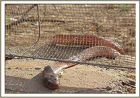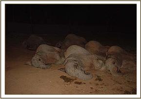 Just before dawn, a red Spitting Cobra tried to enter the elephant Stockades, and became electrocuted by the electric wire. It was removed and burned. Out in the bush, Yatta lay down and Napasha came and tried to climb on her.