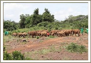 The departure of Mutara, Shukuru and Tano is scheduled for today, so the usual preparations began at 2.30 a.m. in the morning.   By 3 a.m. Tano and Shukuru were successfully loaded but Mutara was a different story.   A rope had to be put around her first whilst she was still at the Stockade, after which she was escorted to the truck, one Keeper at the front with a bottle of milk and the others pushing her from behind.   At the truck nothing could convince her to go in, so the rope had to be attached to a Landrover beyond the truck which reversed to pull her in while the Keepers pushed from behind.   By 3.30 a.m. she was in, and the truck was soon on the road to Ithumba again.   We shall all miss our Big Girls in the Nursery, all of whom were Mini Matriarchs to the youngsters, but it was time that they were upgraded to begin their journey back where they belong.