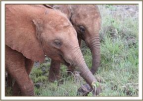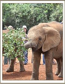 Little Lemoyian attempted a grown-up trumpet today as all the orphans were playing before heading out to browse.   At the public viewing hour Kithaka again tried to push down one of the spectators and was sent to spend time out.   He will eventually be taught how to behave when he finds himself at one of the Rehabilitation Stations where  the bigger elephants will teach him elephant manners!  Murera sneaked off by herself as usual, but at the Private Viewing hour of 3 p.m. she turned up, knowing that a milk feed was in the offing!