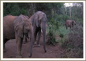Zongoloni was in the lead as the orphans made their way back to the grazing fields in the afternoon. They were stopped from going further by some buffaloes that were blocking the path and as such were forced to change direction. Murera, Sonje and Mwashoti stayed at the back of the group to make sure that the rest of the orphan herd remained safe.