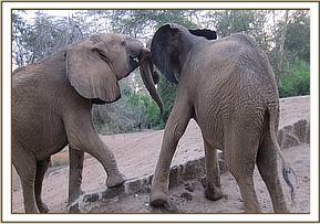 There was a lot of rumbling and unrest coming from the orphans during the night. It seemed as if the babies were trying to push down the walls of the stockades so that they could join the wild elephants that were having a drink outside the stockade gates. Zongoloni was the worst wall pusher with Jasiri then Quanza following suit. Zongoloni managed to knock down the piece of wood that is attached to the stockade door and has her name and details and broke it out of anger. One the wild herd left the orphans quickly settled down.