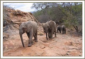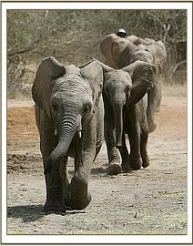 The orphans enjoyed games around the water trough, until all had quenched their thirst and were led out by Yatta. Madiba and Challa remained behind the others, feeding close together until a tree hyrax fell from the tree and landed in between them. This scared them witless, and they rushed back to the Keepers, crying, as fast as their legs could carry them! Having calmed down the two boys went in search of the cause of their fear, but the hyrax had long since disappeared!