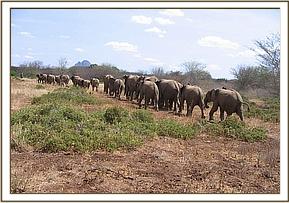 It was another cool day, when browsing and dust bathing dominated the morning. In the afternoon Yatta and Mulika led the orphans eastwards to the slopes of Ithumba hill, where they fed until it was time to return for the night.