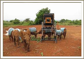 Today, the biggest Polaroid Camera in the world was here to take pictures of the orphaned elephant babies. It was difficult to get the little elephants to cooperate, because when the shutter clicks, the huge camera makes a popping sound which scared the elephants. They also had to be coaxed into coming very close, one by one, which was stressful for the babies and their Keepers.