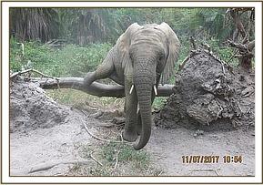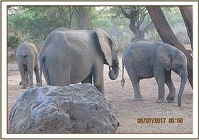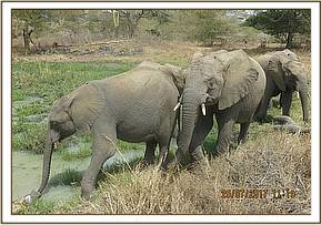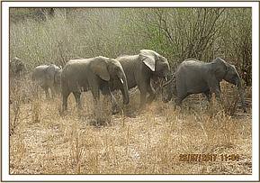 In the morning when all the babies had got up and ready for the day, the boys Ngasha, Ziwa and Jasiri walked out with Quanza to the bushes alongside the springs area. Quanza soon turned back as she came across some army ants on the path and was concerned about them going up her trunk and giving her a bite.
