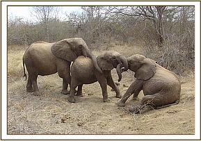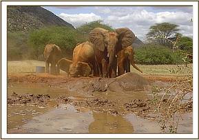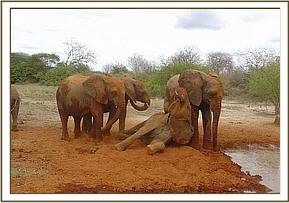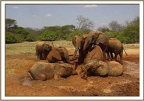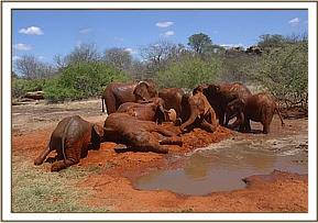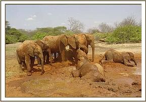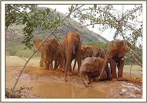 The orphans concentrated on soil bathing at mudbath time. Only Olmalo went into the mud today.