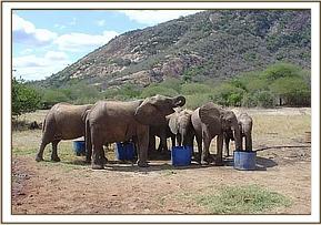 Before dawn two wild elephants visited the Stockades, and drank water from the trough. Inside the orphans rumbled to them in low tones. When the orphans emerged, Yatta led the group following the direction taken by the wild elephants, but the orphans could not catch up with them.