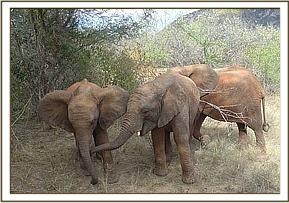 It was cool, so the orphans concentrated on browsing. In the evening, Mulika and Napasha tested their strength by pushing one another This contest was won by Mulika. Taita led the group back to the Night Stockades in the evening.