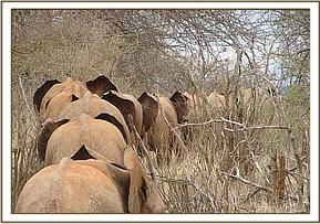 As the dry season begins to bite, the Juniors have to concentrate more on finding sufficient browse to fill their bellies. At 2 p.m., after the mudbath, all except Kilaguni, Sabachi and Kandecha took to shade since it had turned very hot. Kilaguni, Sabachi and Kandecha are more acclimatized to the heat of Tsavo than the other relative newcomers.