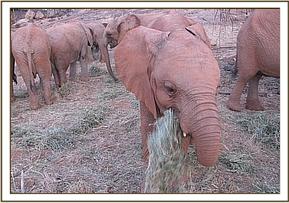 After the usual Stockade activities, the Keepers led the Juniors to browse the Kalovoto river area. Since it was chilly, the orphans opted out of a wallow and instead took a soil bath after their normal noon milk feed.