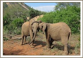 In the browsing field, Orwa engaged Kainuk in a pushing game and as usual Orwa bowed out of the game. Orwa walked over to Naisula and tried to get some new pushing tactics from her by engaging Naisula in a strength testing exercise. Bongo and his playmate Vuria met in a shrub that had attracted them due to its nice leaves. It's only then the two boys realized that they had not greeted each other since morning. Their greetings always consist of pushing and shoving. The two boys went into a tussle that lasted for some time. At the end, their game ended into a draw with neither getting the better of the other.