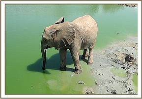 The orphans converged at the edge of the mudbath as Madiba and Tomboi got into the water for wallowing. Narok was tempted into going into the water after seeing Madiba and Tomboi really enjoying themselves. Once she was in the water, it appeared that the water was cold because instead of diving in, she started beating the water with her trunk.