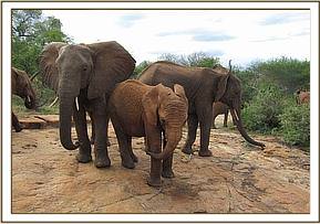 Bongo climbed on a rock and plucked some sweet leaves from a tree growing on top of the rock. Narok, Kithaka and Mutara converged on Suguta who was soil dusting and offered comfort by touching her with their trunks ever so tenderly.