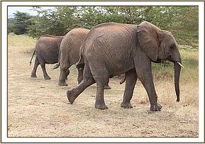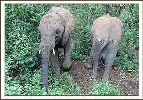 When they came out from their stockades, Lima lima and Quanza, with the help of Ngasha, began following their smell and decided to follow their trails, but were unable to find any wild elephants. Eventually Ngasha surrendered and turned to look for the keepers to take them for milk feeding. The keepers followed the orphans to the feeding point thinking that after bottle feeding, the orphans would go to the waterhole and wallow but it did not happen. When Murera and Sonje told them something by big rumbling, the babies went away to the browsing field to shelter from the hot sun, under the big trees in the forests.